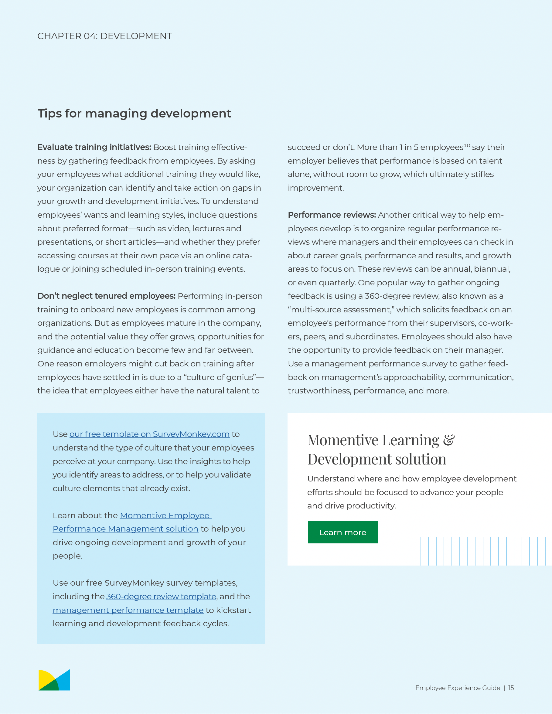 Employee Experience: the power of the continuous feedback loop. I led the design of the SurveyMonkey Employee Experience Guide, a strategic resource engineered to help HR leaders leverage survey data to build more transparent, high-performing cultures.